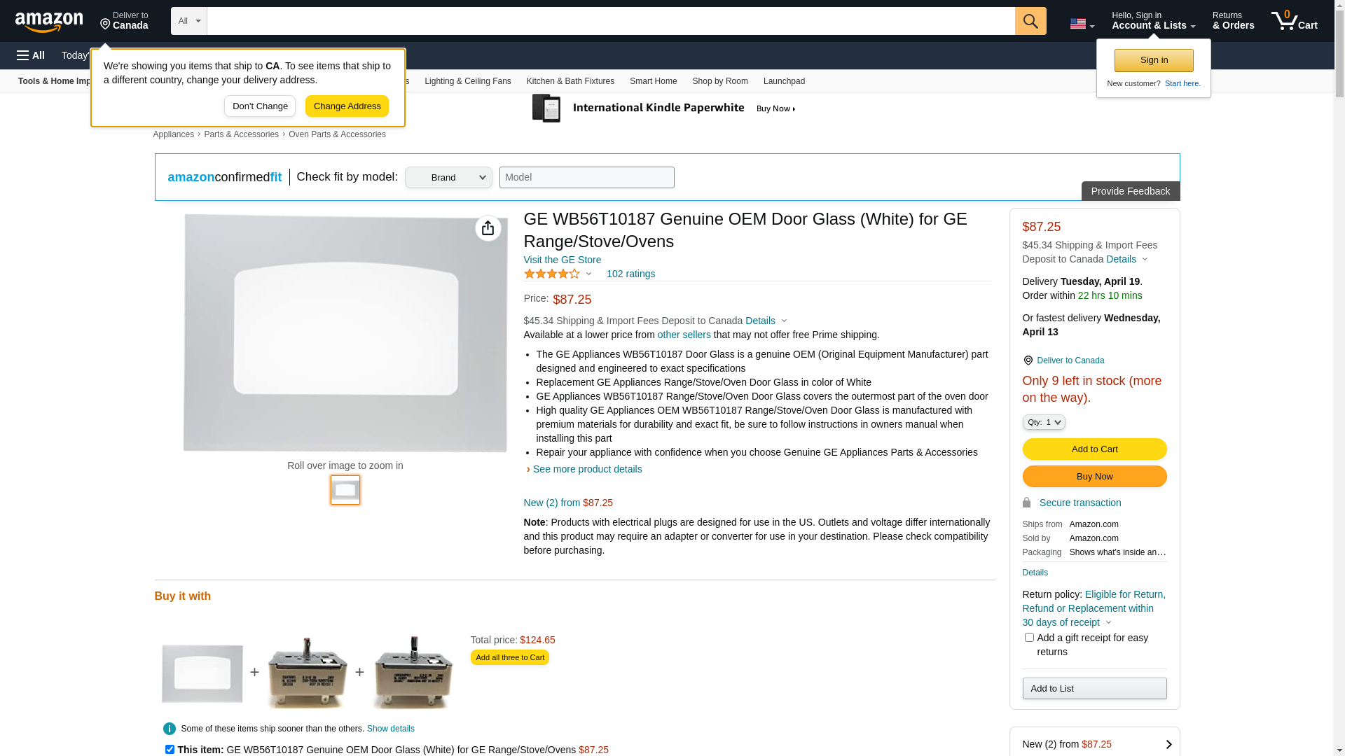 - Replacement GE Appliances Range/Stove/Oven Door Glass in color of White