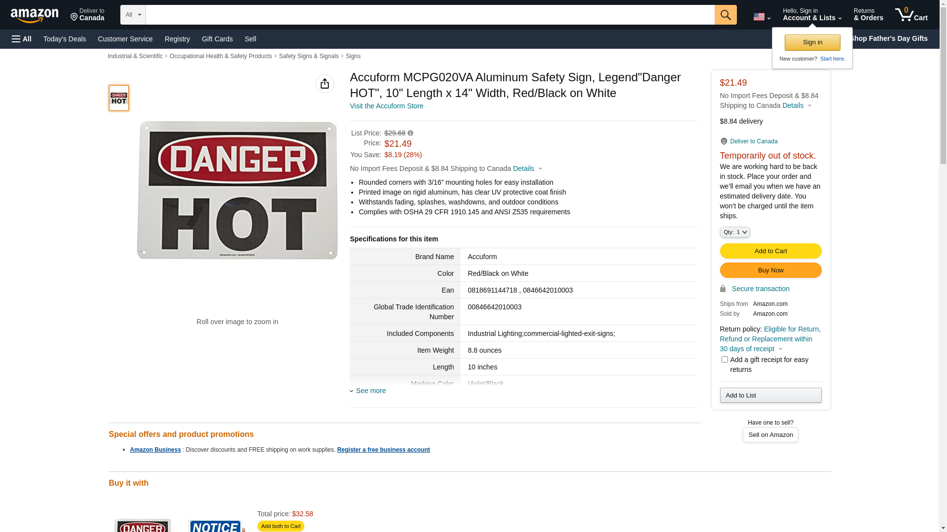 | Manufacturer | Accuform Signs |