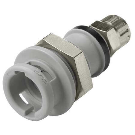 NS2D120412 Valved Panel Mount PTF Coupling Body 1/4 PTF - Single. Colder NS2D120412 Valved Panel Mount PTF Coupling Body - 1/4 PTF NS2 Series couplings were built on Colders proven platform of non-spill valves designed to provide fast safe and virtually leak-free fluid line connections. NS2 is an easy twist-to-connect coupling with an integrated locking mechanism and double-sided non-spill shutoff valves. The NS2 is also chemically resistant making it ideal for a diverse range of applications. Specifications: Material: Polypropylene Color: Gray with dark gray overmold Pressure Range: Vacuum to 45 psi 3.1 bar Mounting Option: Panel Mount Valve Option: Valved Temperature Range: 32F to 120F Valve Spring: 316 Stainless Steel Seal Option: EPDM Spillage: 0.025 cc per disconnect 0.009cc per connect Tubing Size: .17 ID 1/4 OD Available in Bags of 25 units Colder NS212 Series Non-Spill Couplings Specifications NS212 Valved Panel Mount PTF Coupling Body