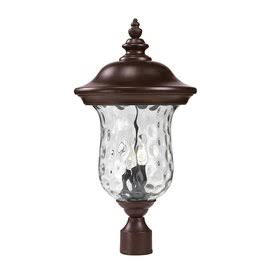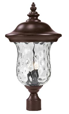 - Traditional charm emanates from this large outdoor post head fixture, which pairs clear water glass with rubbed bronze hardware for a timeless look