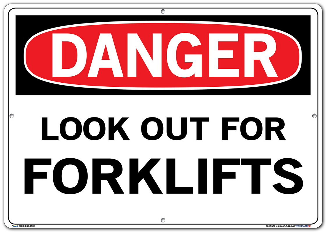 Vestil SI-D-06-E-AL-063 LOOK OUT FOR FORKLIFTS Danger Sign, Aluminum, 0.063" Overall Size, 20.5" W x 14.5" H