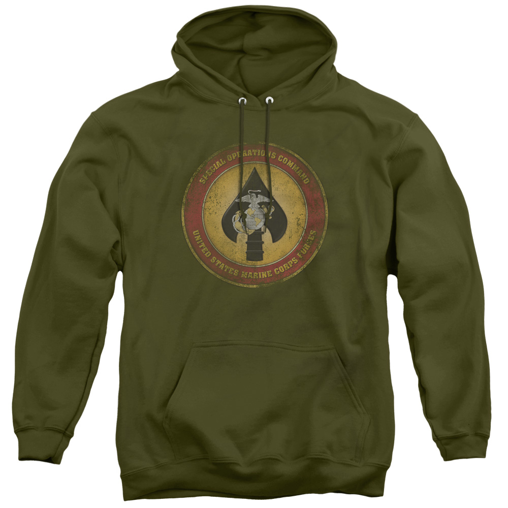 Trevco USMC105-AFTH-3 US Marine Corps & Special Operations Command Patch Adult Pullover Hoodie, Military Green - La