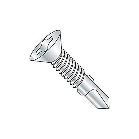 #12-24 x 2 1/2" Self Drilling Screws, Steel, Zinc Plating, Flat Head, Phillips Drive, 4 Point/Wings (Quantity: 1000 pcs)