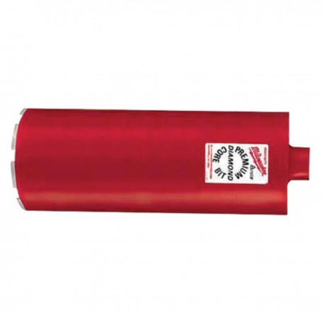 Milwaukee Diamond Bits are designed for fast, efficient coring in a wide variety of concrete, including poured, steel reinforced and pre-stressed, as well as asphalt. Our PREMIUM grade bits are designed to offer exceptional life and conform to the Diamond Core Drilling Manufacturers Association standards. A 14 inch tube length is standard. The bit incorporates a threaded back for attachment to the Diamond Drill Motor. The Diameter of this bit is 10 inch and the thread is 1-1/4-7. FEATURES: 10 in. nominal bit size outer diameter. 1-1/4 in. - 7 thread size, 14 in. tube length. Premium Series - designed to offer exceptional drilling life with smooth, steady effort. Conforms to Diamond Core Drilling Manufacturers Association standards