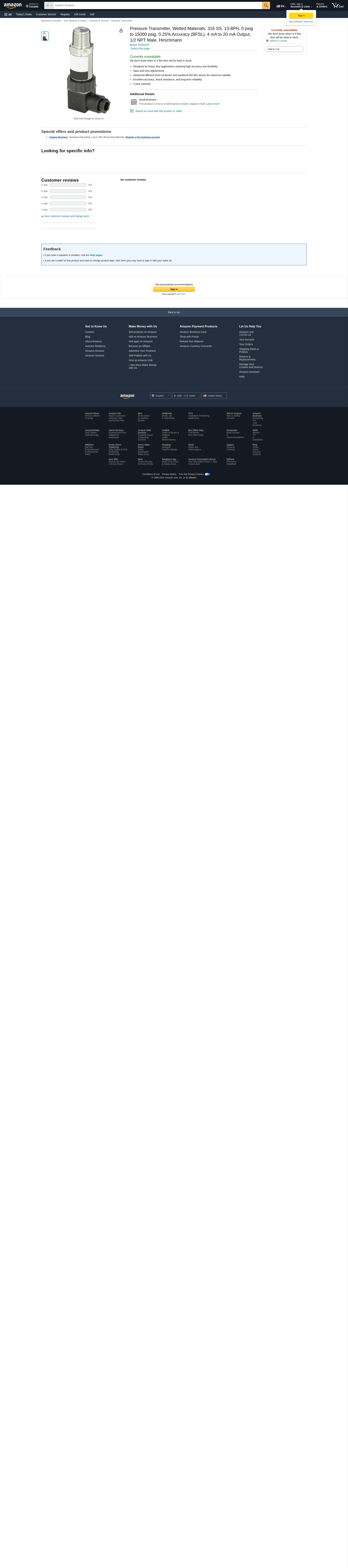 Pressure Transmitter, Wetted Materials: 316 SS, 13-8PH, 0 psig to 15000 psig, 0.25% Accuracy (BFSL), 4 mA to 20 mA Output, 1/2 NPT Male, Hirschmann
