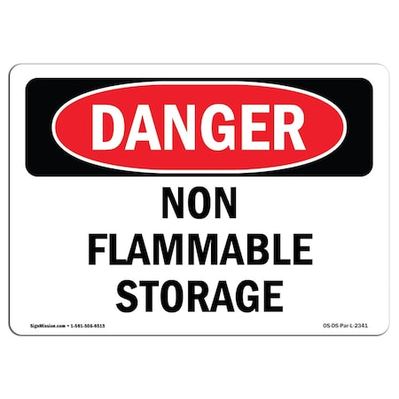 OSHA Danger Sign, Non Flammable Storage, 14in X 10in Rigid Plastic