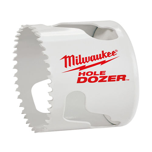 PART NO. MET49560102 Milwaukee 49-56-0102, Hole Dozer Bi-Metal Hole Saw, 1-3/4" Dia.. Made in the USA, the Milwaukee Hole Dozer Hole Saw features Rip Guard, the strongest tooth form in the industry, backed by the Rip Guard Limited Lifetime Tooth Break Warranty. Each tooth is built with more steel behind the cutting edge for added strength. The Rip Guard warranty on tooth breaks is a first for the hole saw industry. The added tooth strength along with 8% cobalt give added life to the teeth, allowing for increased productivity on the jobsite, as well as continued hole quality. The Hole Dozer includes Plug Jack, an all access slot design that allows for full access during plug removal.