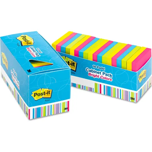 Post-it® Notes Cabinet Pk 65418BRCP, 3" x 3", Bright, 100 Sheets, 18/Pack