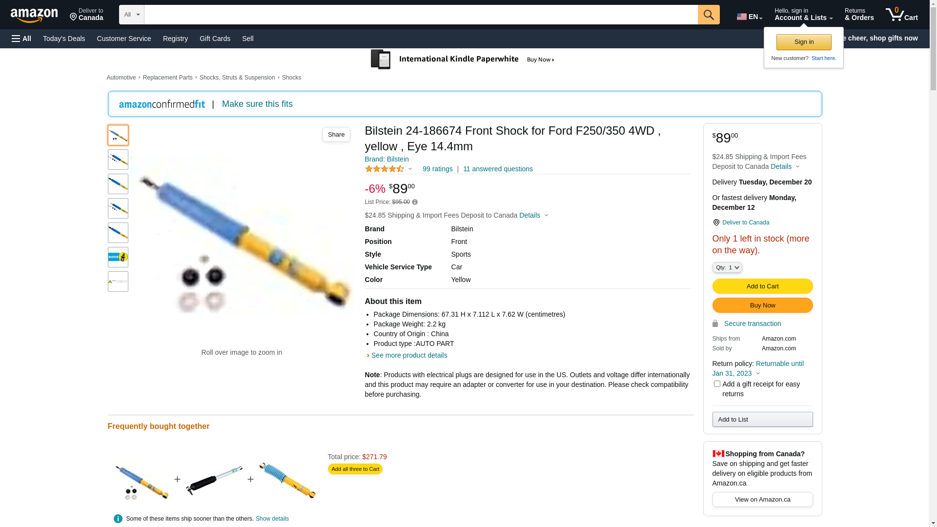 ![]() automotivestuff.com | BILSTEIN-24-186674 | 1 | -2 | 1 | 1 @ $100.00 |