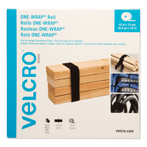 VELCRO Brand VEL-30639-GLO One Wrap, 16.4yd x 1/2in Black