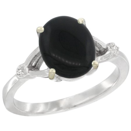10K White Gold Diamond Natural Black Onyx Ring Oval 10x8mm, sizes 5-10
