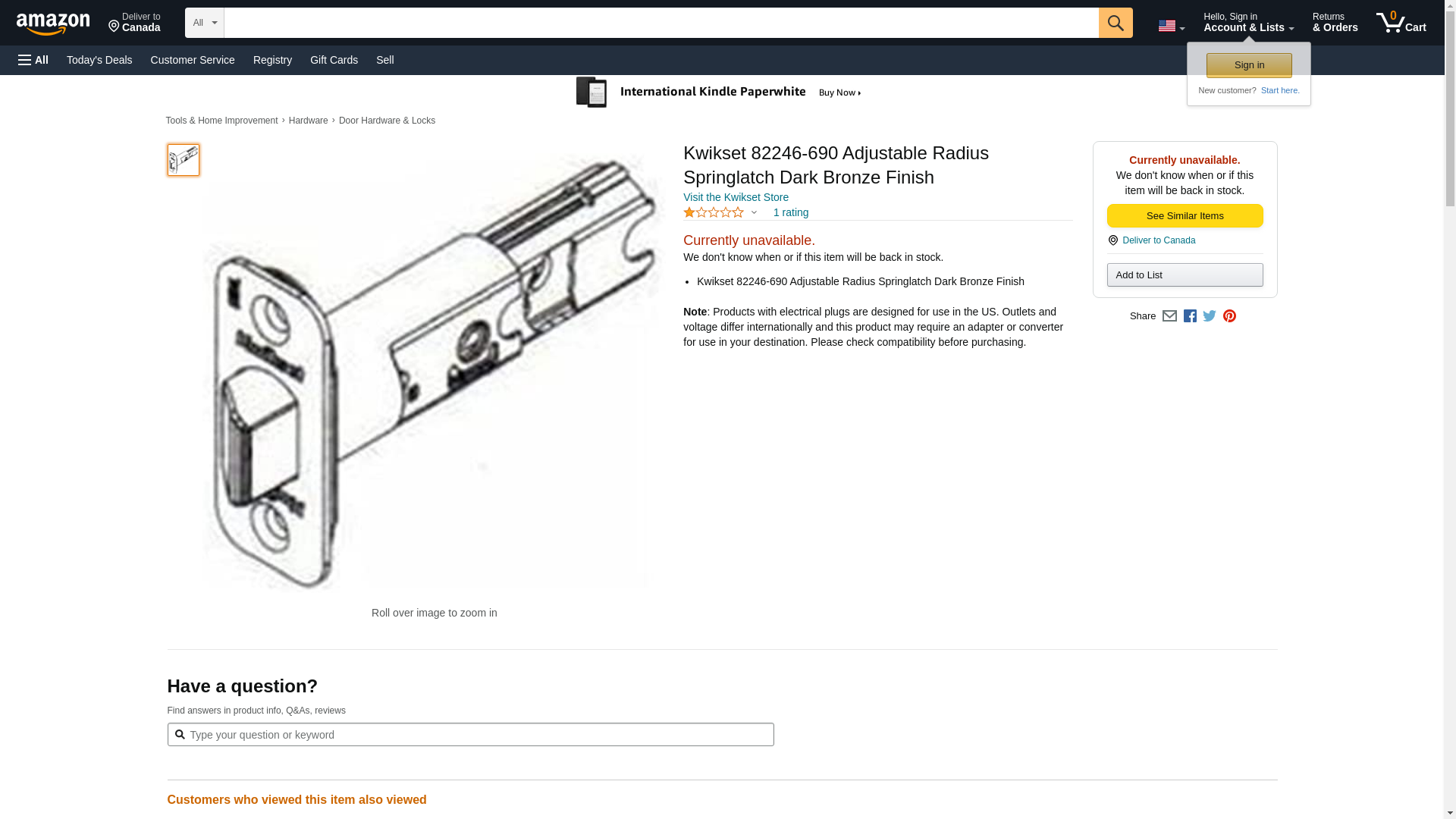 - Kwikset 82246-690 Adjustable Radius Springlatch Dark Bronze Finish