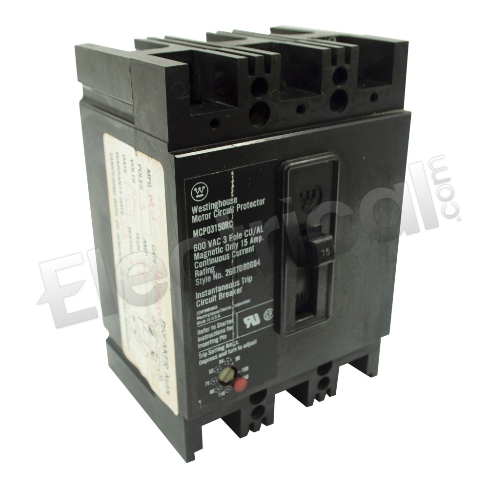 Westinghouse MCP03150Rc 2607D80G04 3 Pole 15A Motor Protector Circuit Breaker