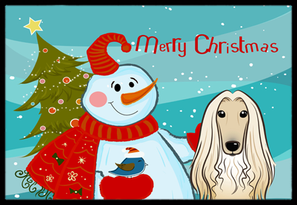 Caroline's Treasures BB1864JMAT Snowman with Afghan Hound Doormat 24x36 Front Door Mat Indoor Outdoor Rugs for Entryway, Non Slip Washable Low Pile, 24H X 36W