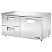 True 2-Drawer 15.5 Cu Ft Low Profile Undercounter RefrigeratorTrue undercounter refrigerators are constructed of heavy duty stainless steel that resists dents and scratches. The undercounter design saves space in small kitchens and provides a 36" work surface. The drawers slid out easily and hold one 12"L x 20"W x 6"D full size pan, two 1/2 pans, or three 1/3 pans. This low profile model has a counter height of 31-7/8". Benefits and Features:heavy duty stainless steel Ecomate insulation Zero ozone depletion (ODP), zero global warming potential (GWP) CFC free 134A refrigerant Refrigeration system holds temperatures between 33° to 38°F Deep refrigerated storage 36" work surface Recessed handles Self-contained system Additional Information:1 door, 2 drawers 5" casters Width: 60-3/8" Depth: 30-1/8" Height: 31-7/8" Ship Weight: 380 lbs Capacity: 15.5 cubic ft 1/5 HP, 5.1 Amps Unit is pre-wired for 115/60/1 phase, 5-15P plug 5-Year condenser warranty 3-Year parts/labor warranty Made in the USA NSF, CE, and UL Listed Model #: TUC-60D-2-LP 384278