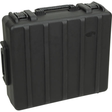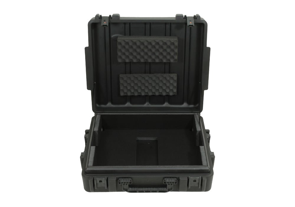 - The 1R2723-8BW features a custom foam interior to accommodate similar sized mixers. The 1R2723-8BW is rotationally molded of linear low density polyethylene plastic for strength and durability and includes three oversized carrying handles, convenient in-line skate wheels and an expandable pull handle for easy transport. SKB's patented trigger release TSA latches and stainless steel hinges provide ultimate protection on the road. The custom interior foam provides additional space under the mixer for cables and other accessories and includes four adhesive backed foam inserts for a custom fit to your mixer.