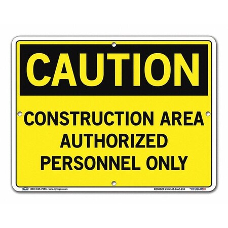 Vestil SI-C-65-B-AC-130 CONSTRUCTION AREA AUTHORIZED PERSONNEL ONLY Caution Sign, Aluminum Composite, 0.130" Overall Size, 12.5" W x 9.5" H
