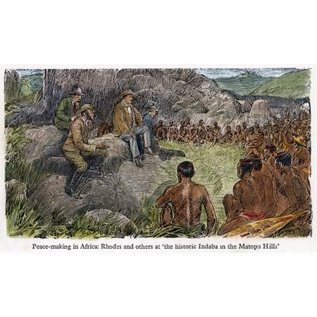 Rhodes Peace Conference Ncecil John Rhodes (1853-1902) And Others At A Peace Conference In The Matopo Hills Of Present-Day Zimbabwe 1896 Contemporary Line Drawing Poster Print by Granger Collection