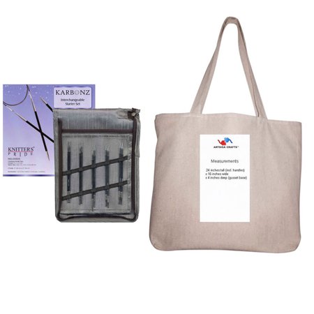 Bundle includes 1 Knitter's Pride Karbonz Starter Interchangeable Long Tip Knitting Needle Set with 1 Artsiga Crafts Project Bag 110601. Set of 10 Karbonz Interchangeable 4.5" Circular Needles (2 tips each of 5 US Sizes: US 2.5, 3, 4, 5 & 6 ); 2 Cords to make 24" & 32"; 1 set of stitch markers, 4 end caps & 2 cord keys packed in attractive black & grey fabric case with see-through vinyl front. Bundle includes either 10 Locking Stich Markers or Aluminum Stick Holder or Plastic Crochet Hook or 2 Plastic Yarn Needles from Artsiga Crafts. All registered trademarked items are guaranteed to benew, in its original packaging andcovered under the manufacturerslimited warranty against all manufacturer's defects (warranty does not cover problems from normal use)