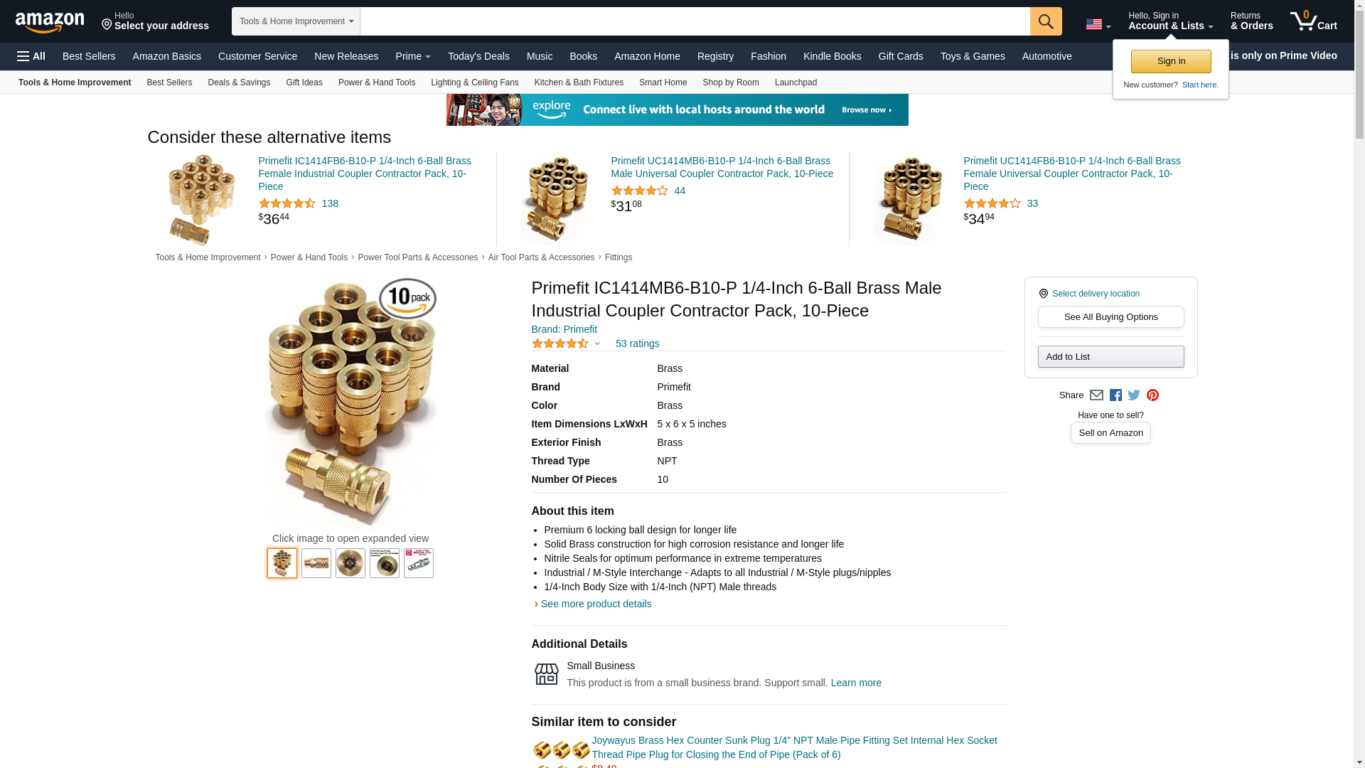 Toolschest.com|Toolschest.com. Primefit IC1414MB6-B10-P 0.25 x 0.25 in. Male 6-Ball Brass Male Industrial Coupler Contractor Pack - 10 Piece