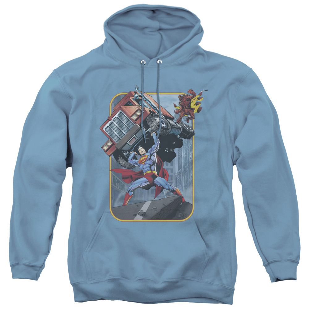Trevco SM1411-AFTH-1 Superman & Pick Up My Truck Adult Pull Over Hoodie, Carolina Blue - Small
