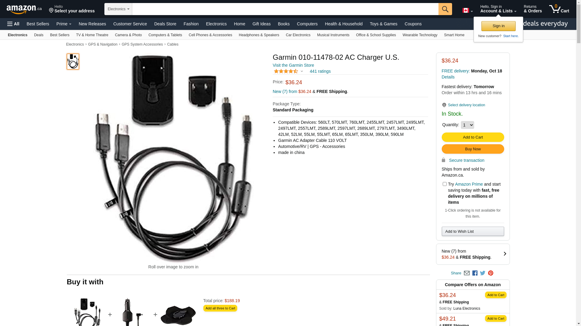Garmin 010-11478-02 AC Charger U.S.