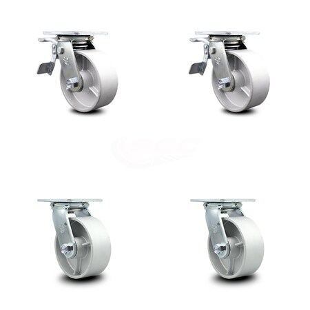 Listing is for a set of four (4) Service Caster Series #30 casters, two (2) swivel with total lock brakes and two (2) swivel casters, with 5" diameter by 2" wide semi steel cast iron wheel and maintenance free precision ball wheel bearings capable of supporting a total weight of 4,000 lbs. (1,000 lbs./caster). When searching for a reliable and durable solution for heavy duty projects, consider Service Caster’s Series 30 semi steel cast iron wheel casters. The Service Caster Series #30 is ideal for material handling, carts, equipment, and shop projects. The semi-steel cast iron wheel is built to withstand high capacity, heavy loads up to 1250 lbs and in temperatures up to 600°F. An economic choice over steel, semi-steel wheels are abrasion resistant and rugged. Finely crafted with a machined hub, wheel face and double ball bearing heat treated raceways, these versatile casters are ideal for a wide range of applications, such as dollies, platform trucks, warehouse carts and freight terminals. Or ensure a smooth and secure ride for industrial and commercial equipment. Even drywall carts, welding carts, and wall panel carts will be ready to roll on the Series 30, keeping you moving forward. Service Caster is unsurpassed in quality, reliability, and excellent customer service. Count on us to move you forward.