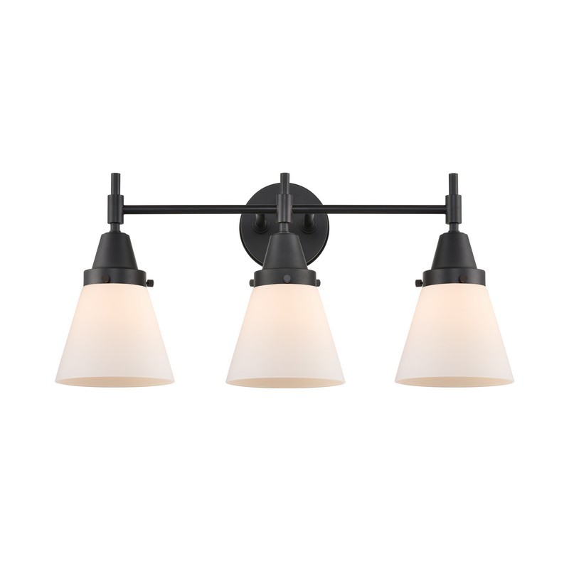 INNOVATIONS LIGHTING 447-3W-BK-G61 CADEN 3 LIGHT 24 1/4 INCH MATTE WHITE GLASS VANITY LIGHT, MATTE BLACK, INCANDESCENT