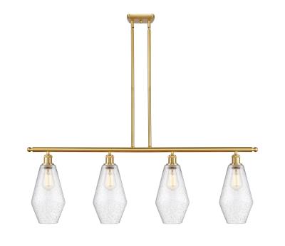 This 4 light Island Light from the Ballston Cindyrella collection by Innovations Lighting will enhance your home with a perfect mix of form and function. The features include a Satin Gold finish applied by experts. Product Features Include: Brand: Innovations Lighting, Collection: Ballston Cindyrella, SKU: 516-4I-SG-G654-7-LED, UPC: 729625130786, Category: Island Light, Finish: Satin Gold, Glass: Seedy Cindyrella 7, Material: Steel/Cast Brass/Glass, Designer: Bruno Marashlian, Width: 48.00 in., Height: 14.00 in., Max Height: 47.00 in., Extension/Depth: 7.00 in., Backplate/Canopy Width: 4.50 in., Backplate/Canopy Length: 6.00 in., Backplate/Canopy Thickness: 0.75 in., Weight: 14.15 lb., Included Chain/Rods/Cord: 2-6 and 4-12 inch stems, Included Lead Wire: 120.00, Warranty: 2 Year Finish, Lifetime Electrical, Bulbs Included: Yes, Bulb Category: LED, Primary Bulb(s): 4 x 6.00 watts Medium Base ST64, Color Temperature: 2700K, Color Rendering Index: 82.0000, Total Lumens: 600, Voltage: 120, Safety Rating: UL/ETL Damp Location, Title 20 Approved
