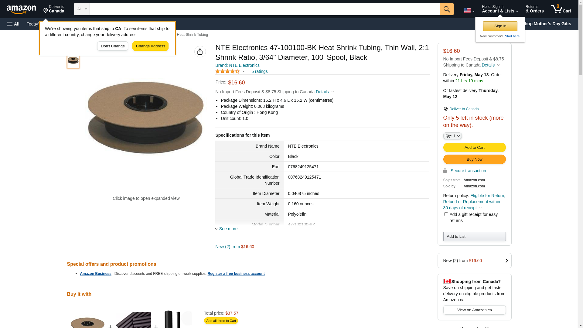 NTE Electronics 47-100100-BK Heat Shrink Tubing, Thin Wall, 2:1 Shrink Ratio, 3/64" Diameter, 100' Spool, Black