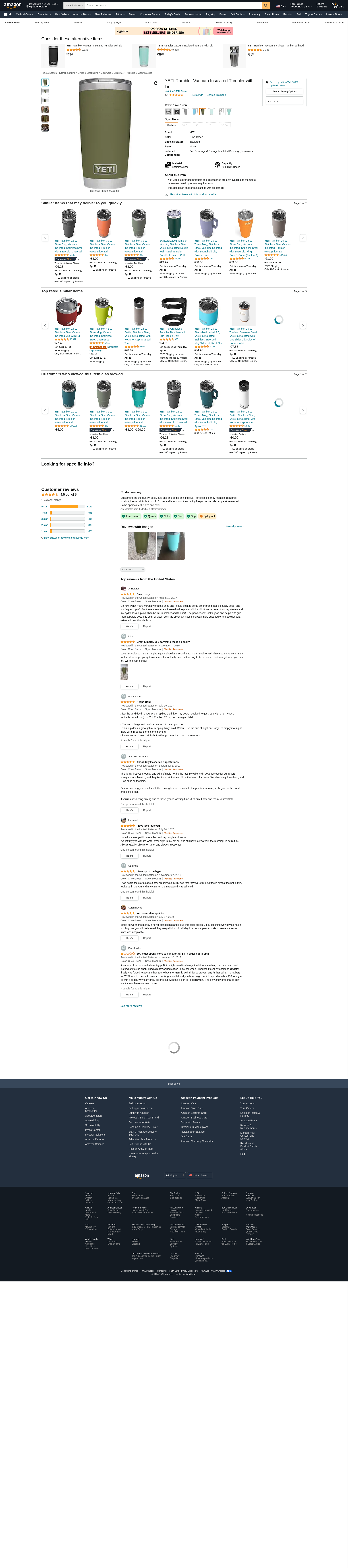 YETI Rambler 20 oz Tumbler, Stainless Steel, Vacuum Insulated with Standardr Lid, Olive