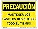Vestil Caution Sign SI-C-36-B-AL-063-S Aluminum .063" Overall Size 12.5"W x 9.5"H Keep Aisle Clear at All Times, MANTENER Los PASILLOS DESPEJADOS TODO EL Tiempo