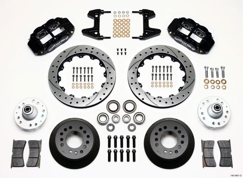 Wilwood Dynalite Front Brake System - 6 Piston Caliper - 12.88 in Drilled/Slotted Rotor - Offset Hat - Black - Ford Mustang 1974-78 140-9801-D
