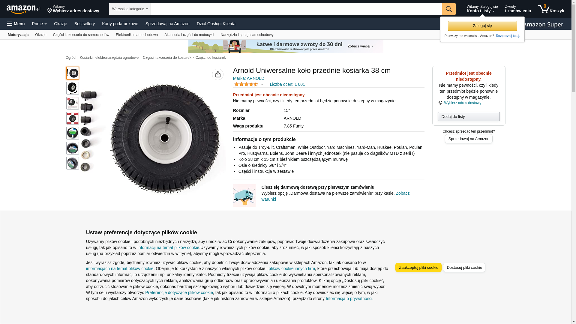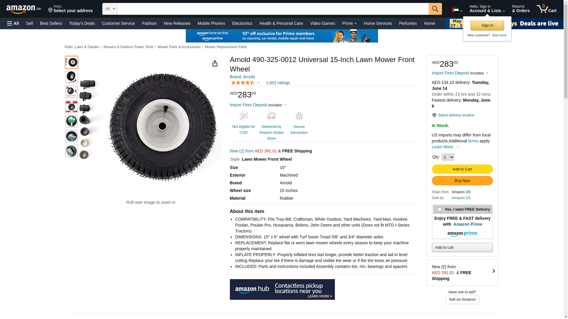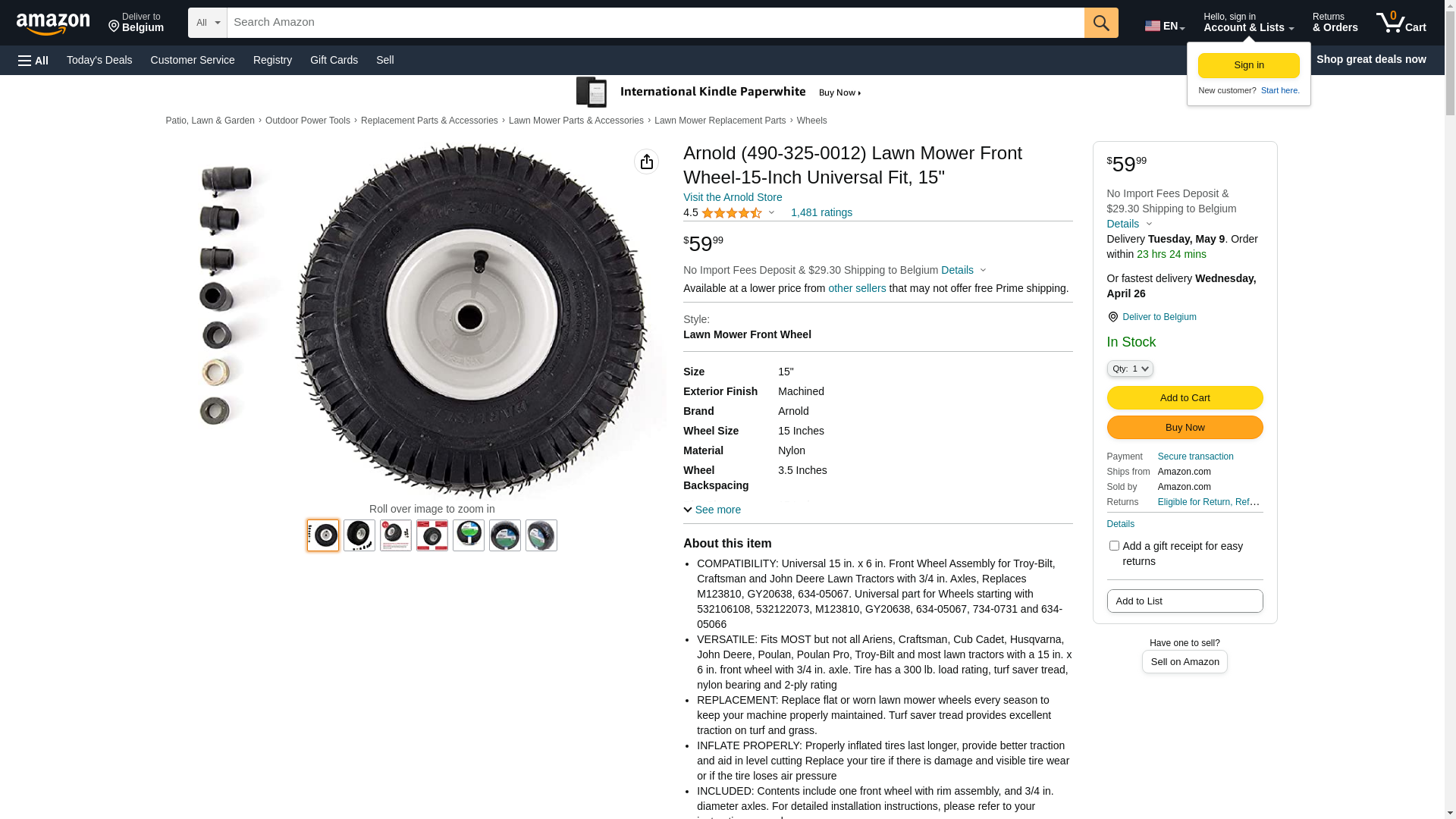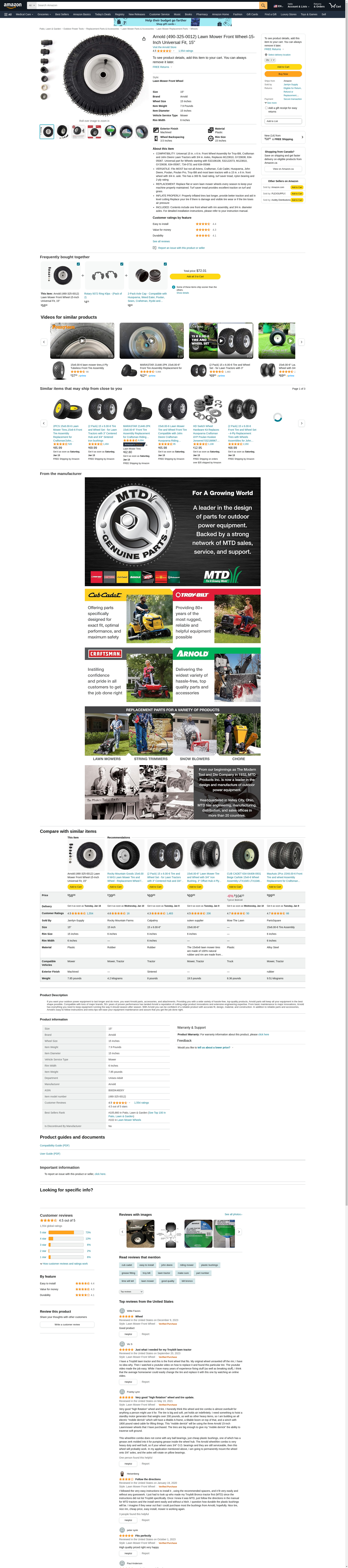 Arnold 490-325-0012 Universal 15-Inch Lawn Mower Front Wheel