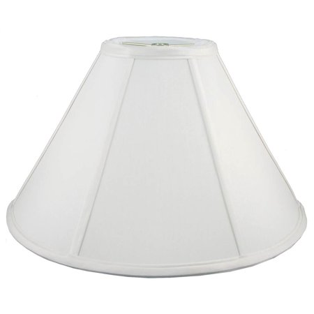 Size: 22 in. Diam x 12 in. H; Lampshade Types. Shantung faux silk with off-white fabric liner. Hand made. Matching top, bottom and vertical trim. Enhances lamp and room decor. Made from polyester and fabric. Fitter in brass color. Made in USA. No assembly required.