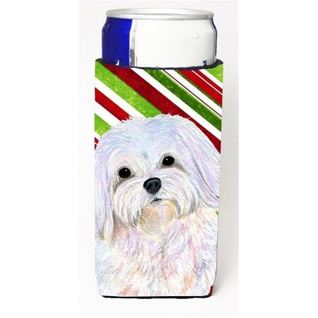 Caroline's Treasures SS4551MUK Maltese Candy Cane Holiday Christmas Ultra Hugger for slim cans Can Cooler Sleeve Hugger Machine Washable Drink Sleeve Hugger Collapsible Insulator Beverage Insulated Ho