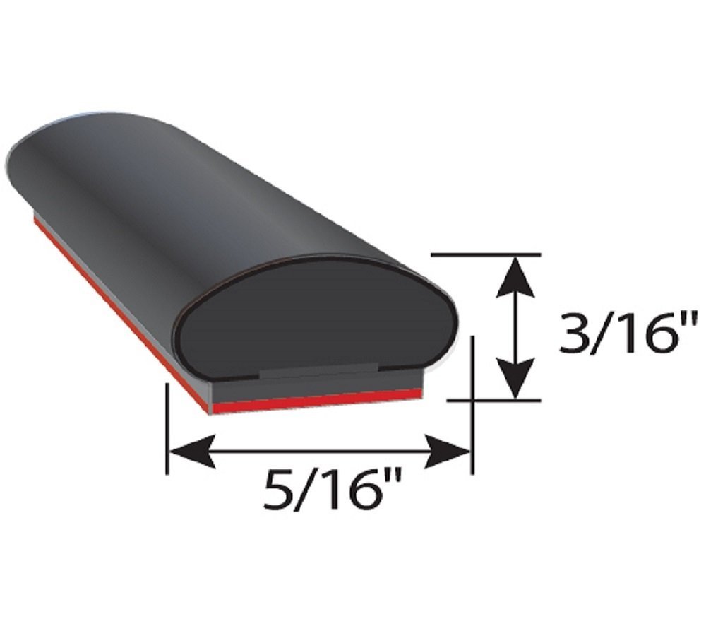 Trim-Lok Redi-Stik Flexible PVC Trim, Black with 3M™ Tape, 3/16" Height by 5/16" Width, 25' Length
