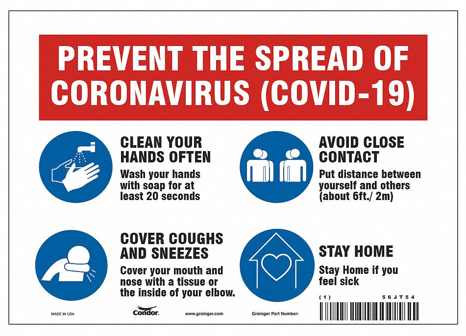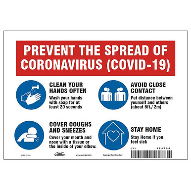 Condor Prevent The Spread Of Coronavirus Sign HWB716T0710 ZO-G6618097 - SIM Supply