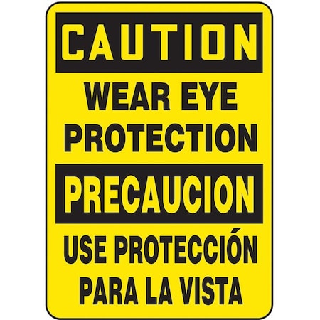 Accuform SBMPPE736VA Aluminum Sign, Legend "Caution WEAR Eye Protection/PRECAUCION USE PROTECCION para LA Vista", 14" Length x 10" Width, Black on Yellow