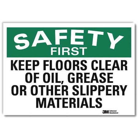 Safety Decal, Horizontal Rectangle, Number of Printed Sides 1, English, Sign Format Traditional OSHA, Sign Legend Keep Floors Clear Of Oil, Grease Or Other Slippery Materials, Sign Legend Background Color White, Sign Legend Style Text