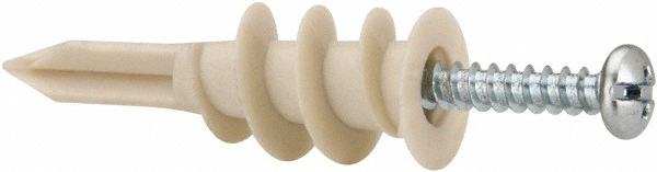 The Zip-It anchor is a one-piece self drilling anchor designed for use in gypsum wallboard for light to medium duty loads. It is available in both engineered nylon and Zamac alloy designed for use with No. 8 screws in 3/8 inches to 1 inches thick wallboard. The Zip-It Jr. is also available in engineered nylon and Zamac alloy designed for use with No. 6 screws in 3/8 inches to 5/8 inches wallboard. These fasteners are not recommended for use overhead or applications where holding values are critical.