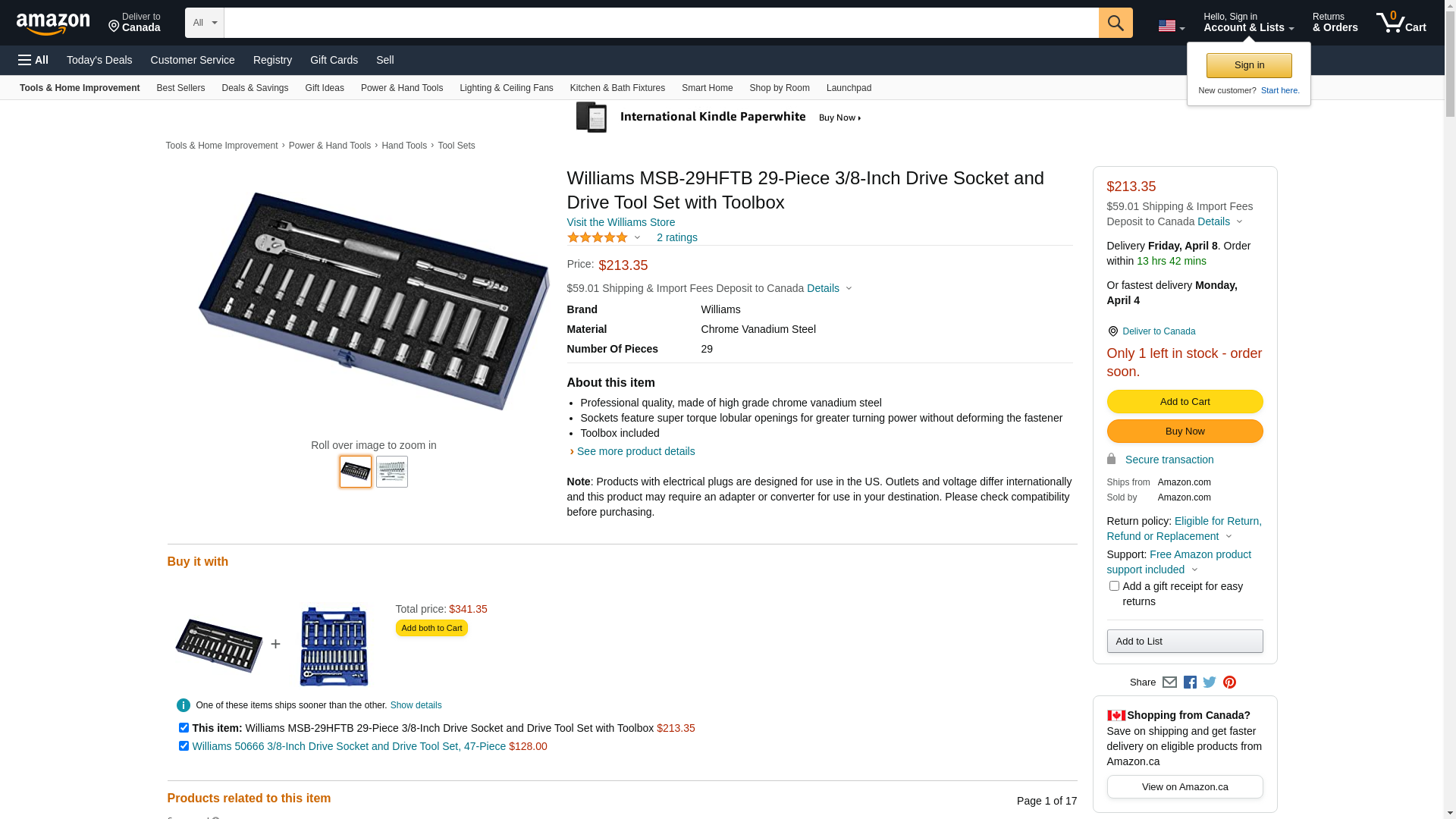 Williams MSB-29HFTB 29-Piece 3/8-Inch Drive Socket and Drive Tool Set with Toolbox