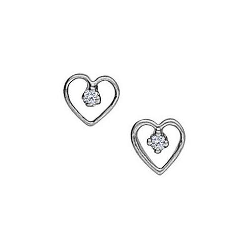 Fine Jewelry Vault UBNER40136W14D April Birthstone Diamonds Heart Earrings with CZ in 14K White Gold