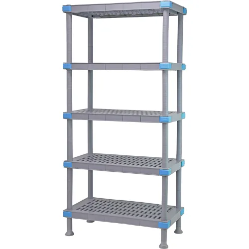 - Category: Shelving Unit, All Plastic; Material: Polypropylene/ABS; Color: Gray