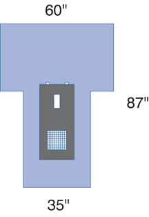 - Reinforced table cover, 44" x 76" (112 cm x 193 cm); Hand towel; 2 Leggings, 29" x 43" (74 cm x 109 cm) and Cystoscopy T-drape, 60" x 35" x 87"(152 cm x 89 cm x 221 cm)