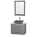 Wyndham Collection Centra 30 inch Single Bathroom Vanity in Grey Oak, White Carrera Marble Countertop, Altair Black Granite Sink, and 24 inch Mirror