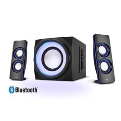 2.1 Bluetooth "Lights" Multi-media Speaker System. Multi-colored LED lighting with 8 color controlled settings. Controls on subwoofer. Cyber Acoustics 44W Peak Power Speaker System with Control Pod 2.1 Bluetooth "Lights" Multi-media Speaker SystemMulti-colored LED lighting with 8 color controlled settingsControls on subwoofer.