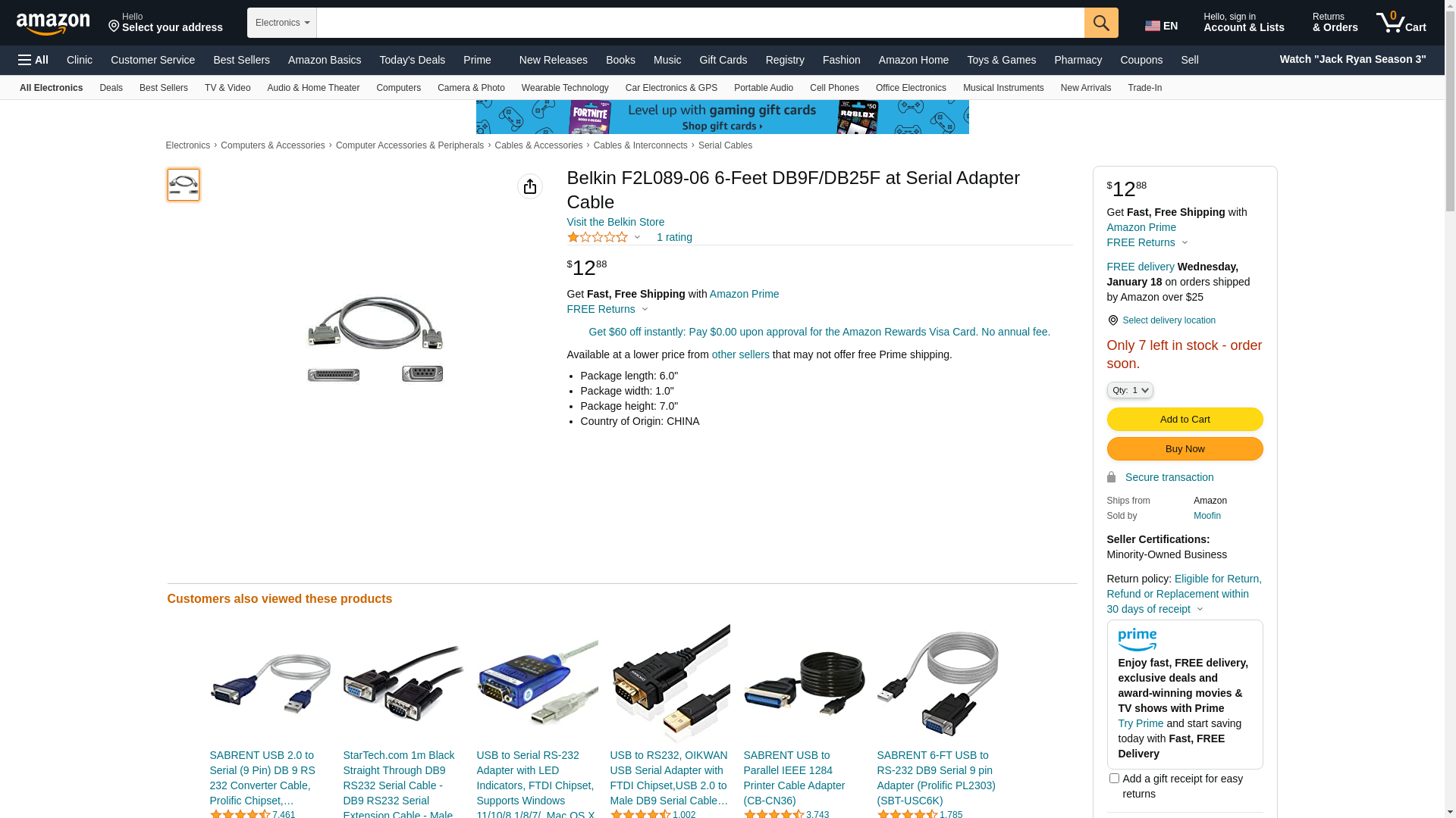 Belkin F2L089-06 6-Feet DB9F/DB25F at Serial Adapter Cable