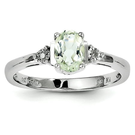 Roy Rose Jewelry Sterling Silver Diamond and Green Quartz Ring ~ Size 6