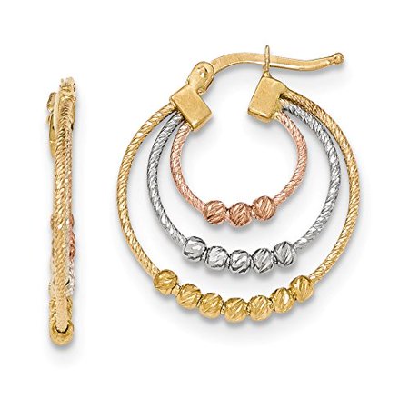 <ul> <li>14K Stamped Tri Color Gold.</li> <li>Approximate Item Weight: 3.18 Grams.</li> <li>Item Dimension: Length - 26 Millimeters (1.02 Inches). Width - 3 Millimeters.</li> <li>Earring Closure: Wire And Clutch.</li> <li>This Item Comes In A Beautiful Gift Box. Images Are For Illustration Purposes Only.</li> </ul>